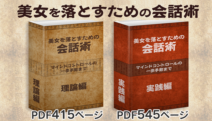 見た目がキレイな女性ほどその会話術にとろけてしまう、商品名の通りマインドコントロールの一歩手前まで女性を魅了するのはこの「美女を落とすための会話術」ならではですね。